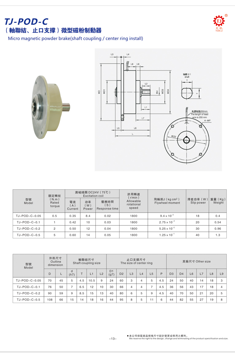 TJ-POD-C-0.05、TJ-POD-C-0.1、TJ-POD-C-0.2、TJ-POD-C-0.5、
